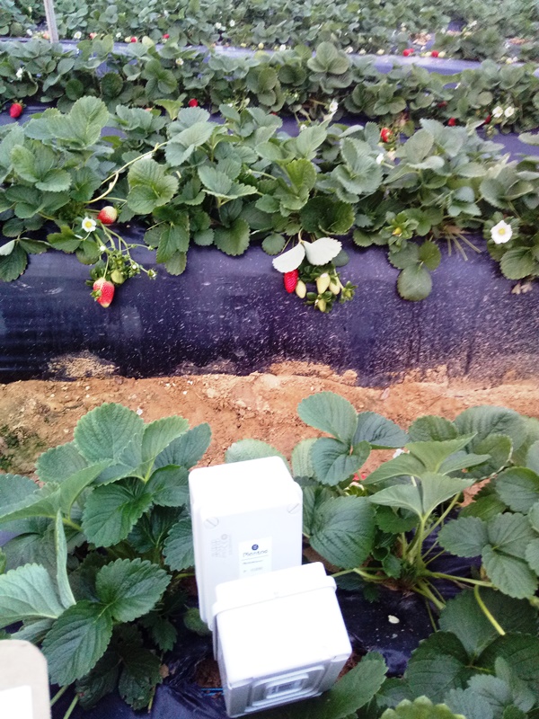 Sensores/sondas en invernaderos de fresas, en Huelva-Frutos rojos