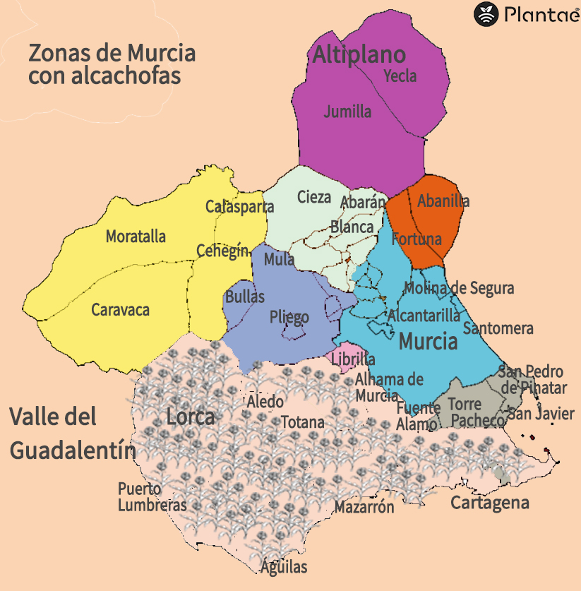 La alcachofa de Murcia es la variedad Blanca de Tudela. Su riego controlado por sensores de humedad es imprescindible para su desarrollo.