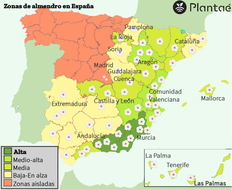 El almendro en España mejora su calidad con el riego controlado por sensores/sondas de humedad, temperatura y conductividad.